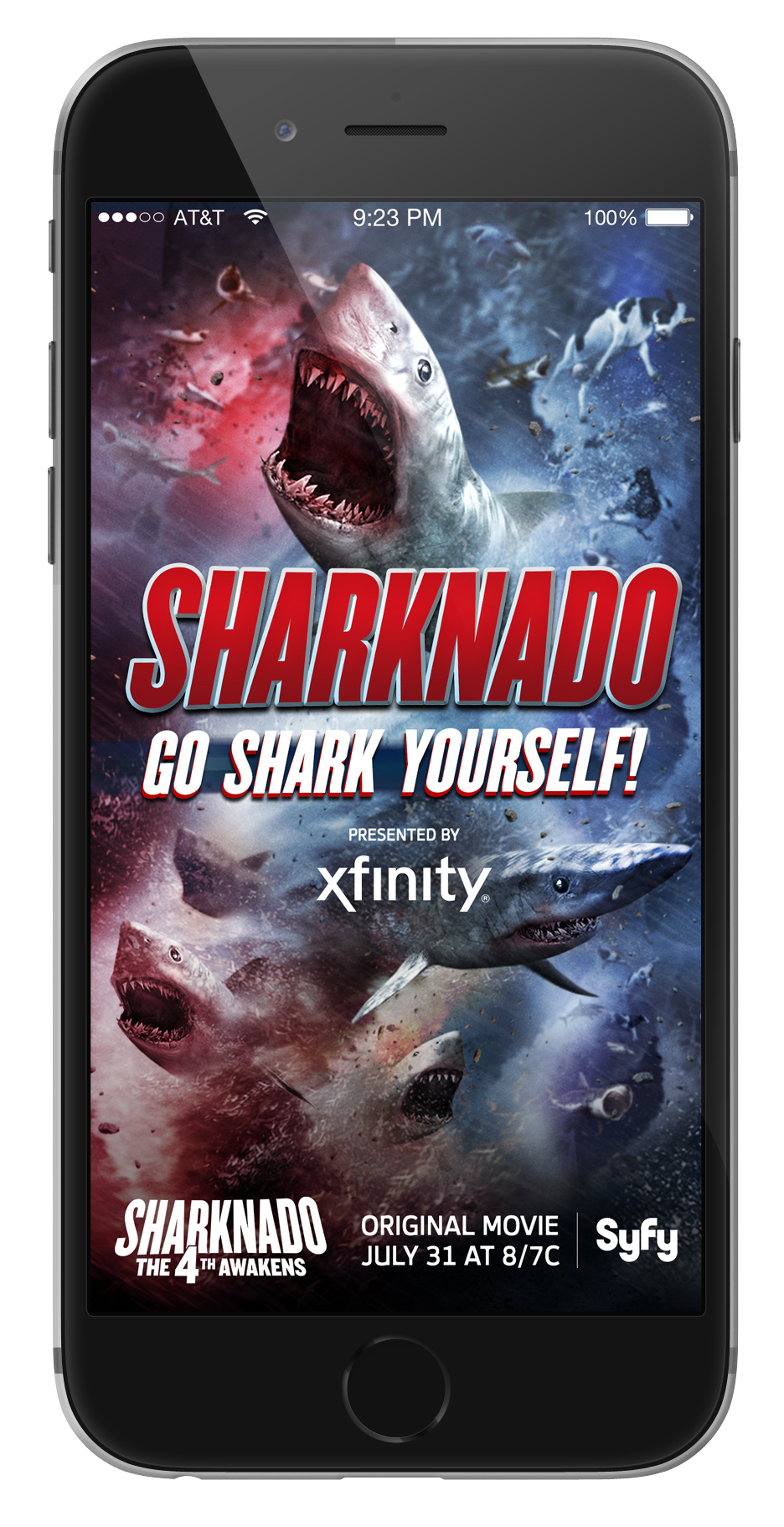 App designs for a fun photo filter app called "Go Shark Yourself" that allowed the user to put themselves 'into' a Sharknado. User would upload photos and videos and be able to add effects and filters to create themselves into the Sharknado experience.